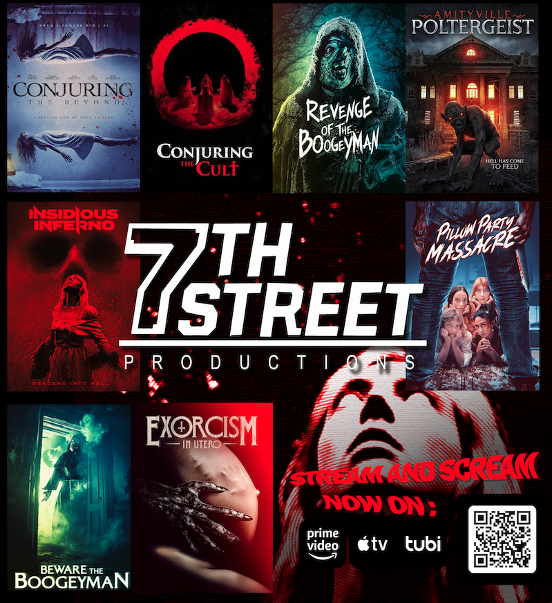 Since our inception in 2017, 7th Street Productions has written, produced, and secured distribution for an impressive lineup of ten feature films. Available for streaming on-demand via platforms like Tubi, Amazon Prime, and VUDU, our films have also earned prestigious recognition, notably being featured in The New York Times. Additionally, 7th Street Productions and our films are proud regulars at the esteemed Crypticon Horror Film Festival in Seattle, celebrating the genre’s innovation and artistry.